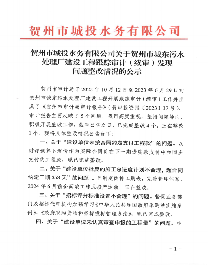 下一篇:廣西賀州城建投資集團有限公司關于審計整改結果情況的公告