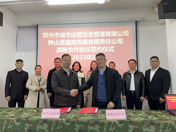 3月1日下午,賀州市城市運(yùn)營投資管理有限公司與鐘山縣盛園發(fā)展有限責(zé)任公司成功簽署戰(zhàn)略合作協(xié)議。城市...