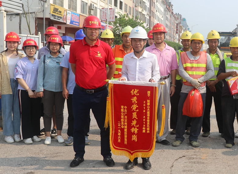 在項(xiàng)目現(xiàn)場,蘭乾雄為戰(zhàn)斗在一線的工人們發(fā)放了西瓜、清涼飲料,并與工人代表拉起了家常,一一詢問了工人的家庭、收入及工資發(fā)放等情況。他說到,正是因?yàn)橛幸痪€工人們的努力和堅(jiān)守,我們的一些重點(diǎn)工程和項(xiàng)目才能順利向前推進(jìn),他們是最值得尊敬的人。同時,蘭乾雄為姑婆山大道項(xiàng)目頒授了“2018-2019年度優(yōu)秀黨員先鋒崗”旗幟,肯定了他們?yōu)轫?xiàng)目建設(shè)的付出,鼓勵他們繼續(xù)充分發(fā)揮黨員先鋒崗先鋒模范作用。